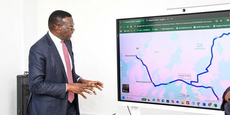 Transport Cabinet Secretary Davis Chirchir assessing the state of roads in Laikipia County during a meeting with the leaders from the county on Monday, September 1. Twitter | Davis Chirchir