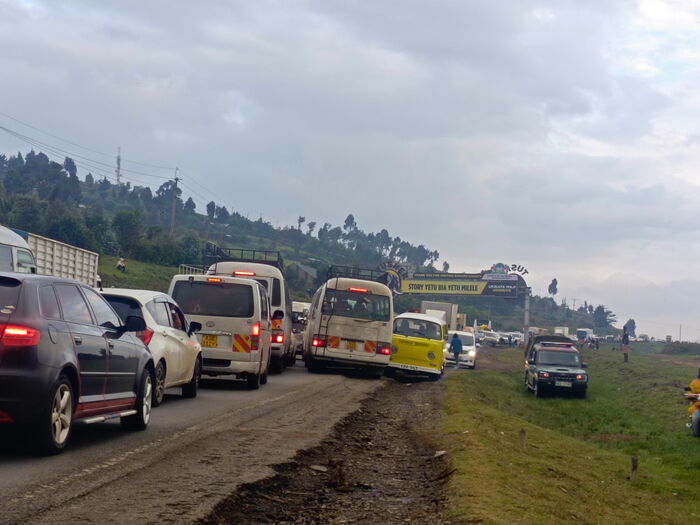 Motorists stranded in traffic on the Nairobi-Nakuru Highway on Wednesday, September 3, 2025.