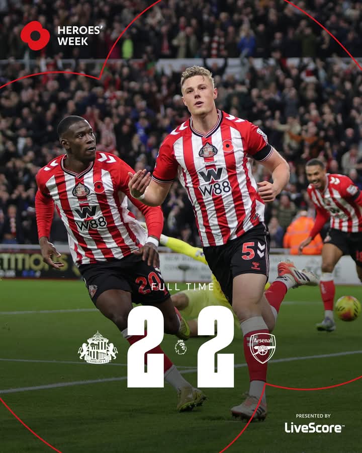 Daniel Ballar opened the scoring in the 36th minute after a carefully worked routine by Sunderland. A mistake at the back allowed Bukayo Saka to equalise in the 54th minute before Leandro Trossard fired them ahead in the 74th minute.